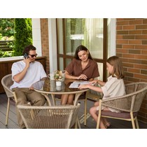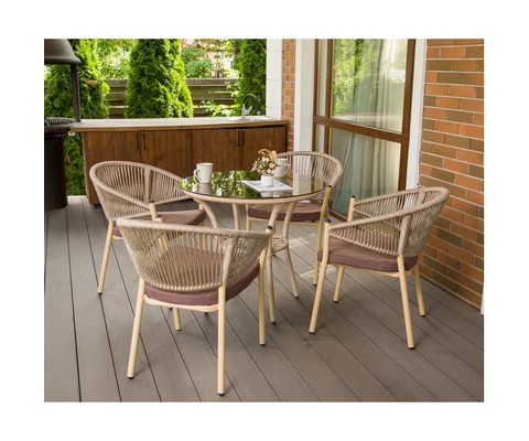 Стул Латте с подушкой подходит для использования на открытых верандах и террасах.