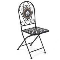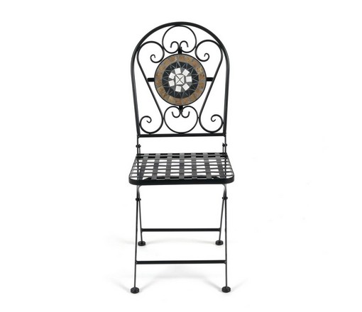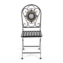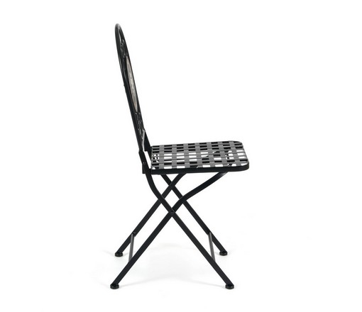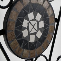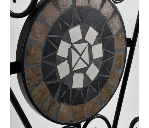 Спинка, украшенная оригинальным винтажным орнаментом из мозаики и коваными узорами ручной работы, прочный каркас, изготовленный из стального сплава с напылением краски, выглядят дорого, элегантно, добавят ноты изысканности и индивидуальности в ваш интерьер.