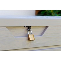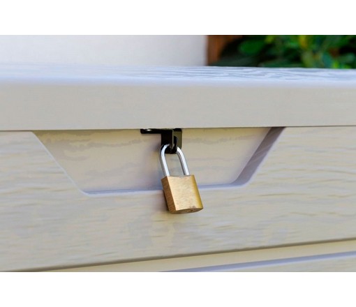 Усиленная крышка и наличие петель для навесного замка позволит запереть ящик и хранить вещи в полной безопасности (навесной замок не входит в комплект).
