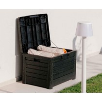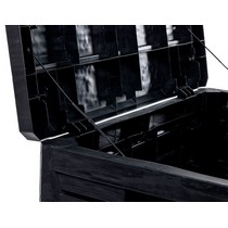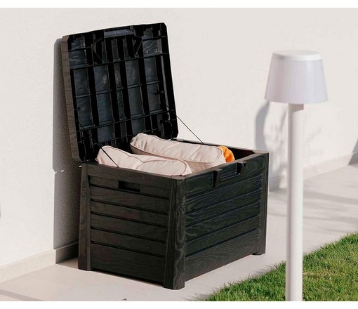 Сундук изготовлен из переработанного пластика, устойчивого к ультрафиолетовым лучам и неблагоприятным погодным условиям и рассчитан на долгий срок службы.