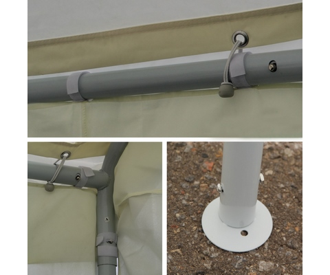 Тент садовый из полиэстера быстро и несложно монтируется и закрепляется с помощью растяжек.