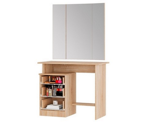 Туалетный столик оснащен зеркалом и 3 выдвижными ящиками.