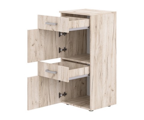 Универсальная тумба 2 плюс 2 для грамотной организации и комфортного пользования, вмещает в себя 2 ящика и 2 вместительных глухих шкафчика с распашными дверцами.