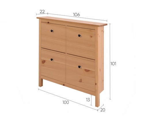 Четыре просторных отделения обеспечивают достаточно места для хранения как минимум 8 пар обуви до 46 размера.