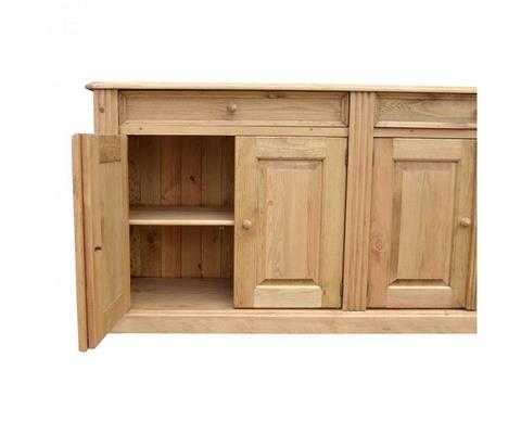 4 распашные дверцы, два выдвижных ящика и широкая полка.