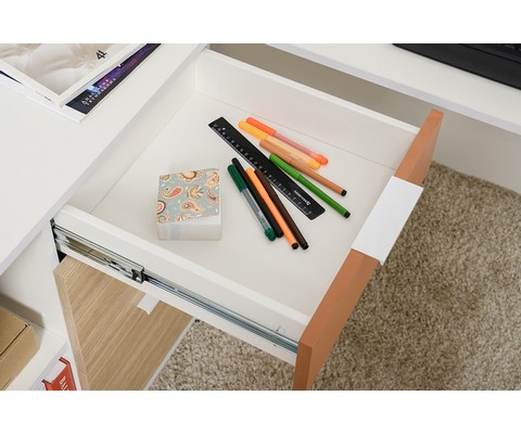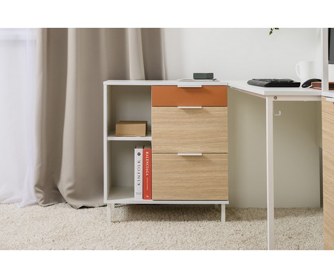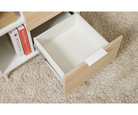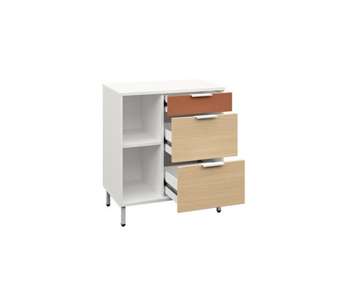 Тумба Марвэл 16.160 состоит из трех выдвижных ящиков и открытых полок.