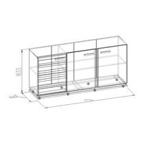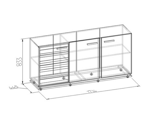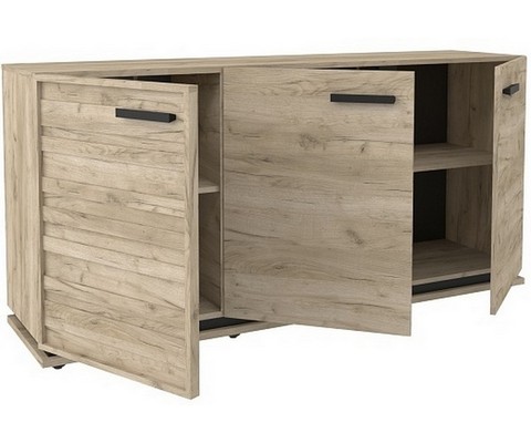 Тумба из трех отделений, за распашными дверцами которых находятся полки.