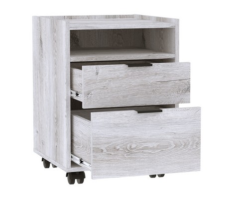 Офисная тумба для хранения Флекс 28 оборудована открытой нишей и двумя выдвижными ящиками разных размеров.