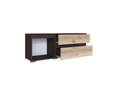 Тумба под телевизор Плейона малая венге не имеет лицевой фурнитуры - открывание за скос.