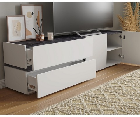 Тумба под ТВ Аркон (белый, бетон темный) - идеально подходит для размещения телевизора. Тумба с полками функциональная и отличается от остальных своим стильным дизайном.
