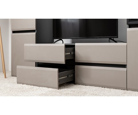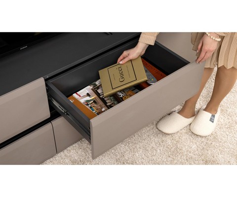 Тумба под ТВ Сидней 13.63 состоит из четырех выдвижных ящиков.