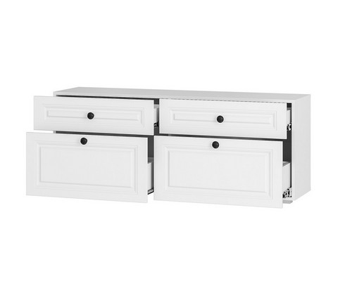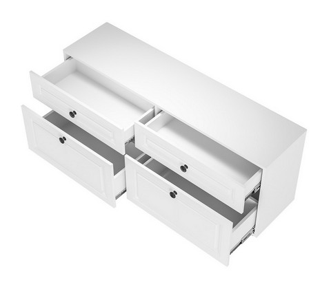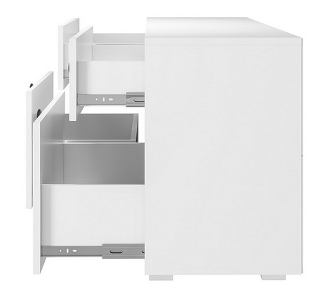 Каждая из двух тумб содержит четыре выдвижных ящика - нижние увеличенной высоты.