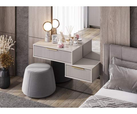 Фасад из МДФ с фрезеровкой в вертикальную полосу придает тумбе элегантный вид.