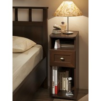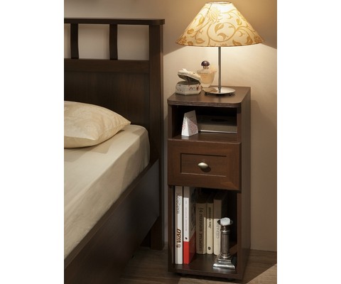 Прикроватная тумба оснащена одним выдвижным ящиком и двумя открытыми секциями.