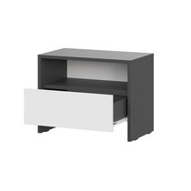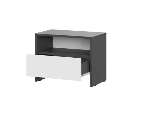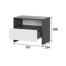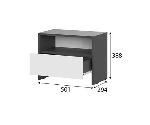 Прикроватная тумба изготовлена из высококачественного ЛДСП, что гарантирует долговечность и устойчивость к механическим повреждениям и выдерживает максимальную нагрузку на верхнюю крышку в 8кг, а на выдвижной ящик — 5–7 кг.