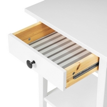 Тумба состоит из верхнего выдвижного ящика и открытой нижней полки.