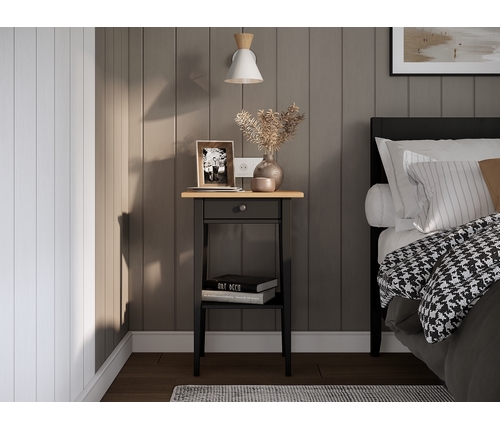 Тумба прикроватная Кымор c 1 ящиком 46х70х35 (черный, светло-коричневый)