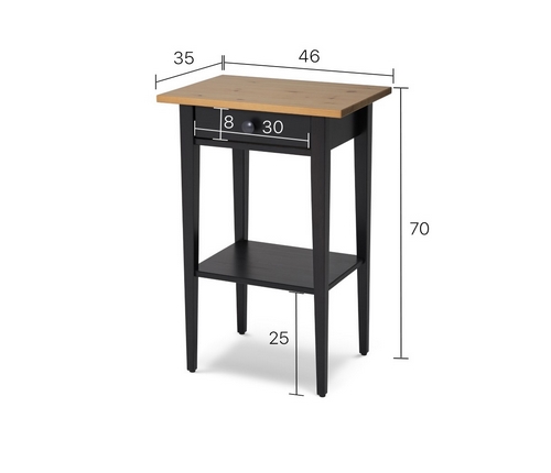 Тумба прикроватная Кымор c 1 ящиком 46х70х35 (черный, светло-коричневый).