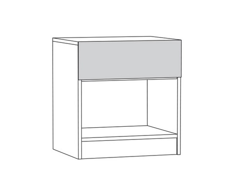 Тумба состоит из выдвижного ящика и полки с дверцей.