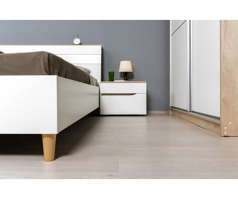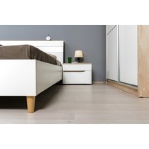 Тумба прикроватная Муссон 16.03 выполнена в сочетании цветов белый шагрень и дуб эндгрейн.