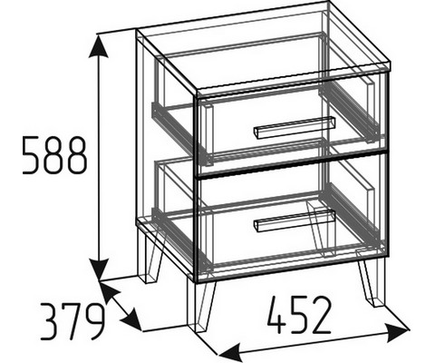 Прикроватная тумбочка с двумя выдвижными ящиками.