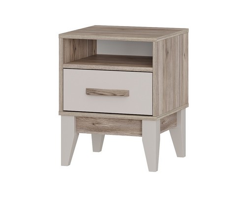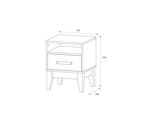 Тумба прикроватная Скандика имеет открытую нишу для мелочей и 1 выкатной ящик.