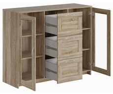 Тумба Сириус 2 двери со стеклом и 3 ящика 117х95 (сонома)