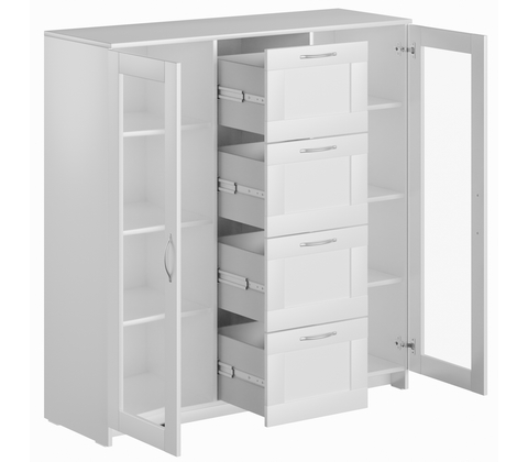 Тумба Сириус 2 двери со стеклом и 4 ящика 117х123 (белый)