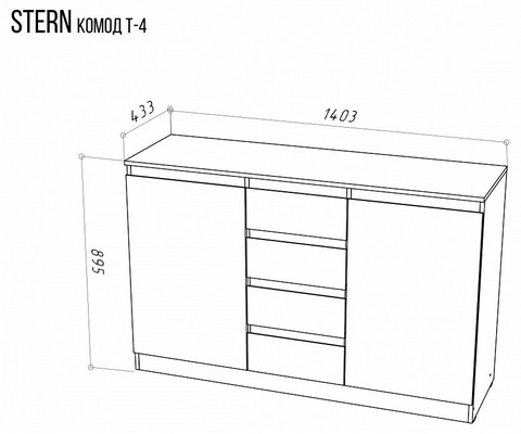 Компоненты, входящие в комплект: 2 дверцы, 2 полки, 4 ящика.