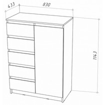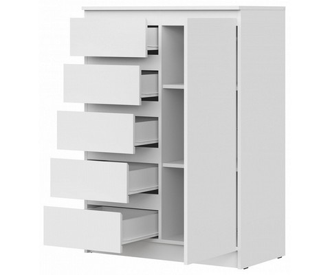 Компоненты, входящие в комплект: 1 дверца, 2 полки, 5 ящиков.