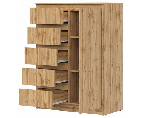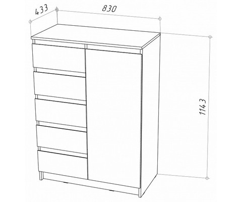Компоненты, входящие в комплект: 1 дверца, 2 полки, 5 ящиков.