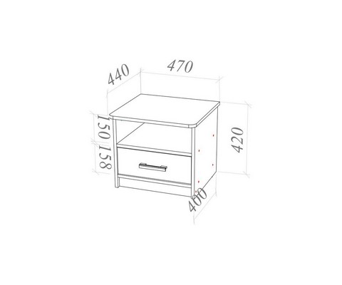 ТП-1 – это классическая прикроватная тумба. Конструкция включает выдвижной ящик в нижней части и открытую нишу над ним.