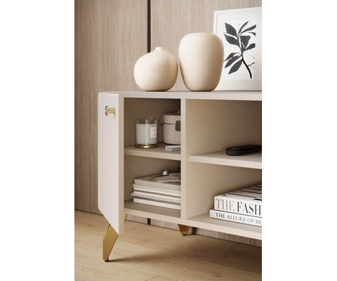 Модель выполнена в лаконичном цвете с декоративной фрезеровкой на фасаде, что придает ей визуальную легкость и выразительность.