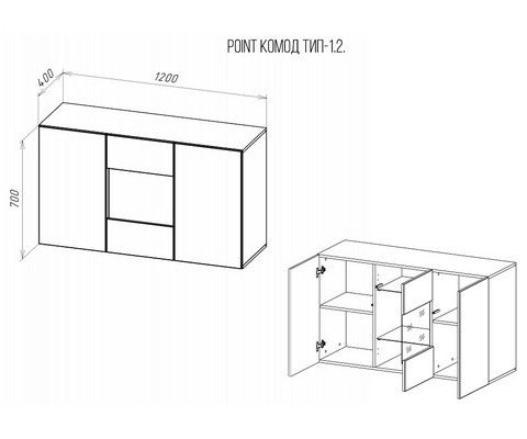 Компоненты, входящие в комплект: 3 дверцы, 4 полки.