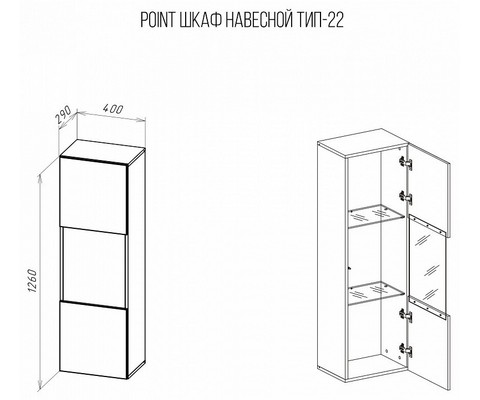 Компоненты, входящие в комплект: 1 дверца, 2 полки.