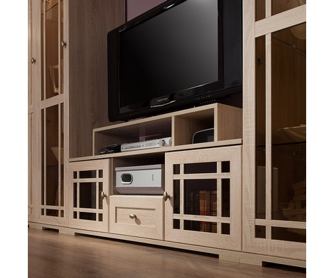 Выдвижной ящик можно не устанавливать, увеличив тем самым размер центральной ниши (например, под аппаратуру).