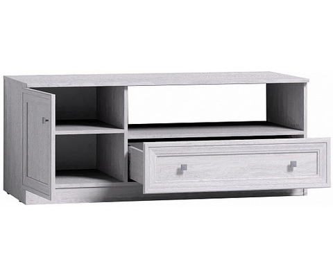 Тумба оснащена отделением с распашной дверью, открытой нишей и выдвижным ящиком.