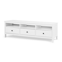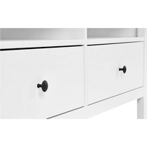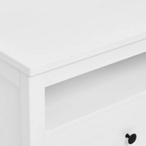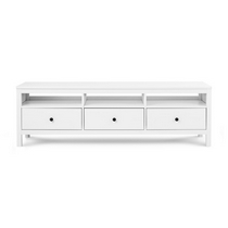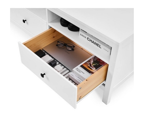 Тумба оснащена тремя вместительными выдвижными ящиками на роликовых направляющих.