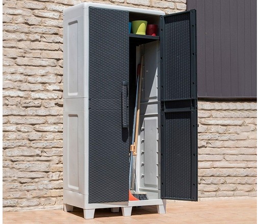 Уличный шкаф Toomax Santorini XL 085 глубокий 2 двери 3 полки светло-серый/антрацит имеет плетение под искусственый ротанг.