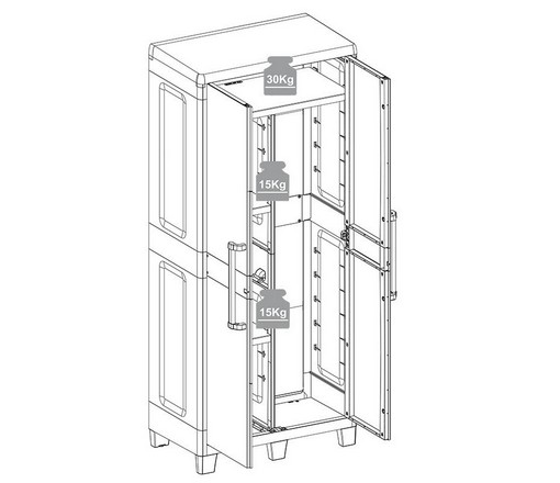 Уличный шкаф Toomax Santorini XL 085 глубокий 2 двери 3 полки светло-серый/антрацит