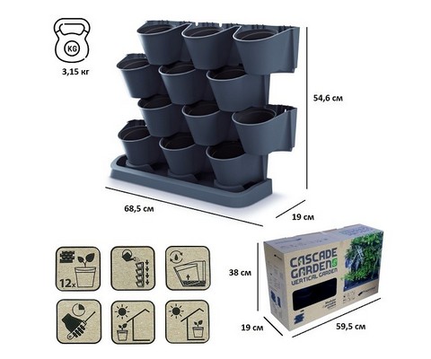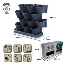 Вертикальный сад Cascade Garden IO2W600S-S433 чёрный - это набор из 12 цветочных горшков плюс ножницы.