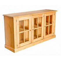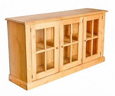 Витрина-тумба, оснащённая сплошной полкой и тремя остекленными дверями.