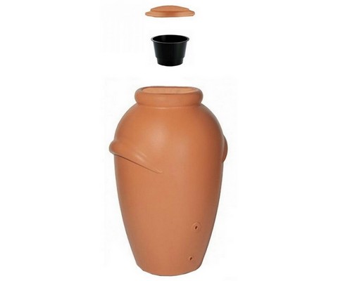 Комплектуется верхним отверстием с крышкой, отверстиями для водосточных труб и для крана или шланга.