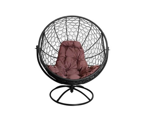 Вращающееся кресло с ротангом (черное с коричневой подушкой)