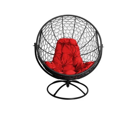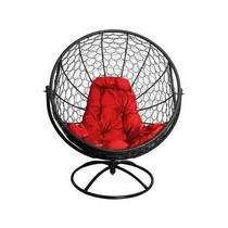Вращающееся кресло с ротангом (черное с красной подушкой).