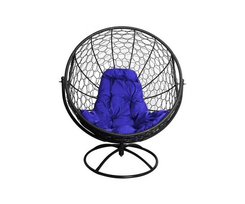 Вращающееся кресло с ротангом (черное с синей подушкой).
