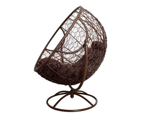 Вращающееся кресло с ротангом (коричневое с коричневой подушкой)