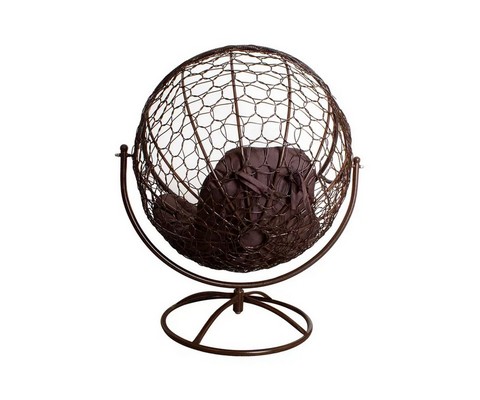 Вращающееся кресло с ротангом (коричневое с коричневой подушкой).