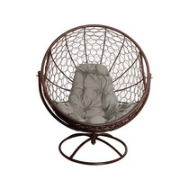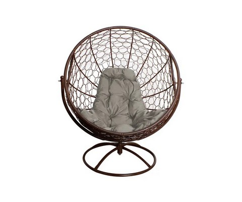 Вращающееся кресло с ротангом (коричневое с серой подушкой)