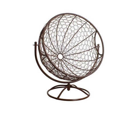 Вращающееся кресло с ротангом (коричневое с синей подушкой).